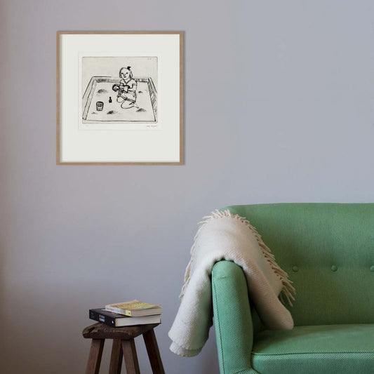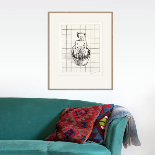 Lena Cronqvist Flicka med pappadocka i balja, rutig
