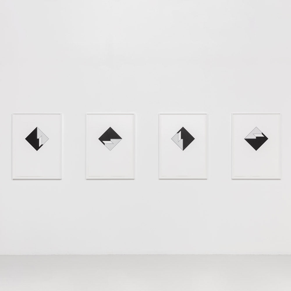 Kvadratisk sekvens är en rytmisk komposition där vridningen av samma form framstår väldigt olika beroende på var de svarta och grå fälten befinner sig i den roterande sekvensen. Läs mer