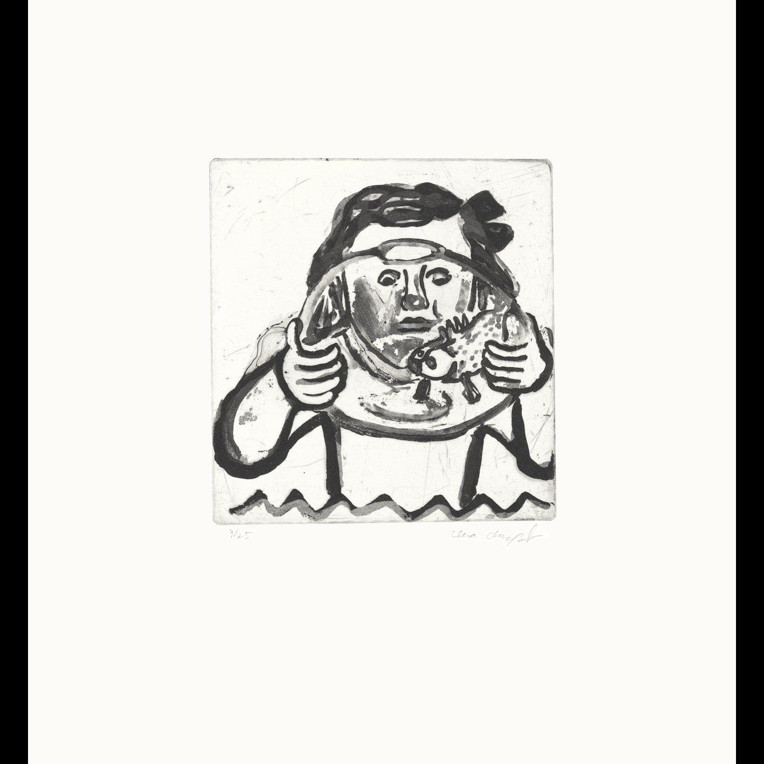 Lena Cronqvist "Flicka med fisk, mörkt hår, rosett"