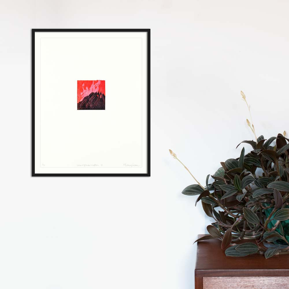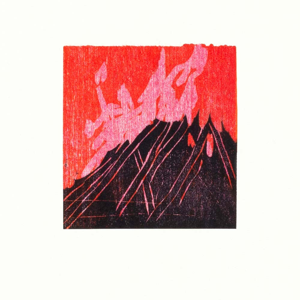 Detta tryck är ett träsnitt med chine-collé, vilket betyder att ett mycket tunt papper fästs bakom den tryckta bilden på papperet.